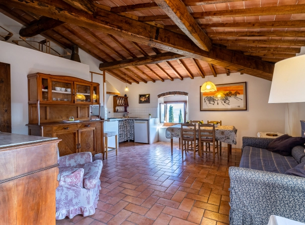 Questo caratteristico bilocale di 60 mq può ospitare fino a 4 persone. Si compone di una camera matrimoniale, di un ampio soggiorno con cucina abitabile e divano letto singolo/matrimoniale, e di un bagno con doccia.