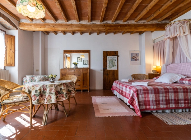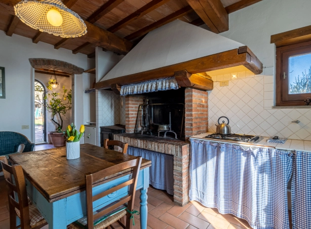 L’appartamento, con accesso indipendente, si trova al piano terra e si compone di un’ampia camera matrimoniale con divano letto doppio, un bagno con doccia e una caratteristica cucina abitabile con focolare. L’appartamento comprende l’uso dedicato di uno spazio esterno ammobiliato nel giardino antistante. Ideale per chi viaggia in coppia o con un bambino.